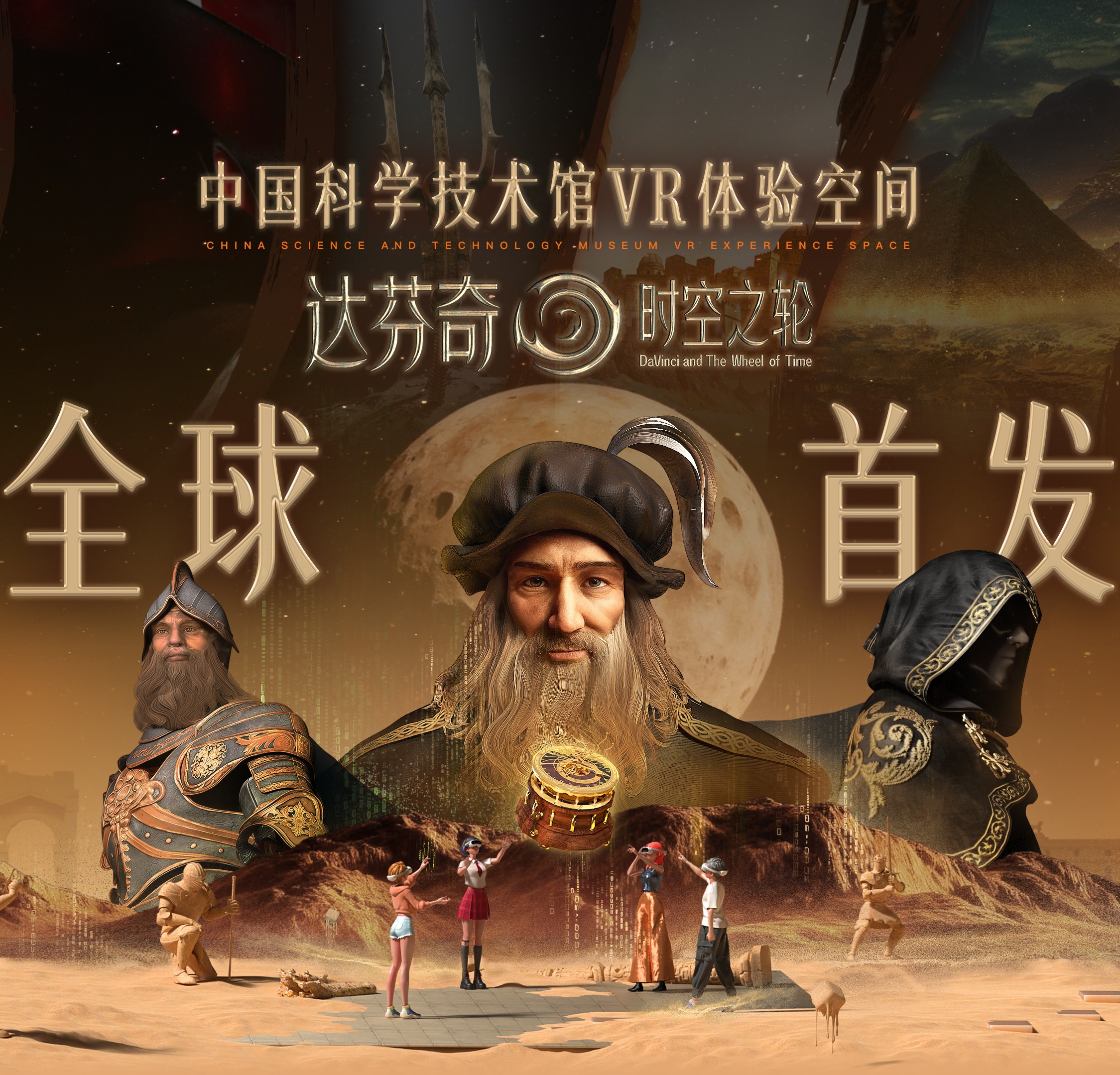 - 首发MR《达芬奇·时空之轮》 25分钟巨幕影院国内首发的MR(Mixed Reality混合现实)《达芬奇·时空之轮》沉浸式体验项目,是一次艺术与科技的完美结合。相传,列奥纳多·达·芬奇设计了一座神秘的天文钟。在他的构想下,借助九颗星球的引力法则,凡人也将拥有掌握时间的能力。没有人知道,这座天文钟是否真的被制作出来,天文钟的使用方法更成了一个延续百年的谜团。时间回到现在,一位自称“艺术怪盗”的神秘窃贼频繁出现在世界各大博物馆,似乎在搜寻着什么,我们的故事,就此展开……