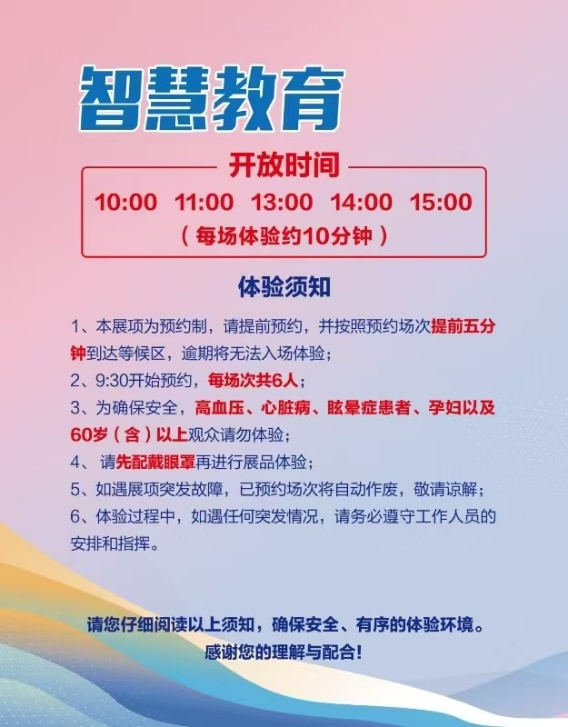 活动简介:体验5G赋能智慧教育的现实场景。展现在教学中如何通过AR/VR/全息技术改善科学体验,让学生的课堂体验从2D跃升到3D,不再是图书或黑板呈现的平面内容,而是栩栩如生的三维内容;对日常中可见的实物,学生不需要用回忆去想象;对于电波、磁场、原子、几何等那些抽象或肉眼不可见内容,VR可以形象可视化的展示,有助于提升认知和理解。