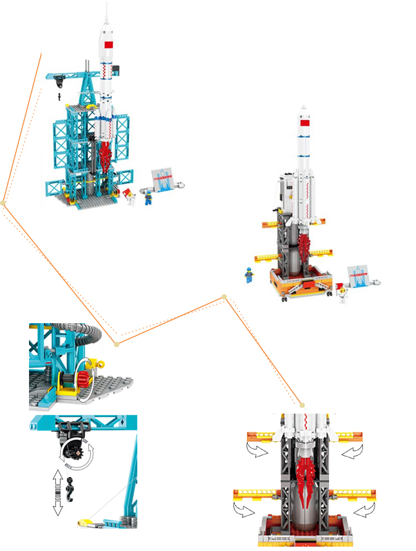 根据航天发射基地的发射塔架和火箭组合体为原型进行再设计,实物色彩搭配让小朋友在家也能拥有现场感。增添张力平衡结构设计,更形象生动的还原火箭发射的状态。物理结构的设计,让产品更具科技感。